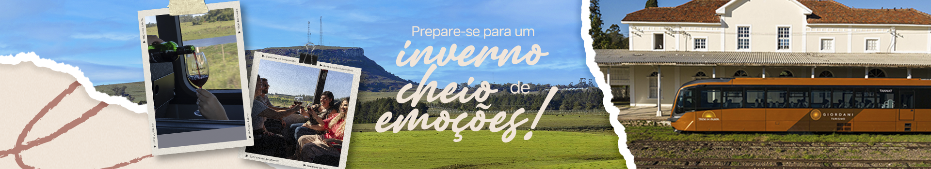 Embarque no Trem do Pampa e viva uma experiência que celebra a essência gaúcha. Com música tradicionalista ao vivo, degustação de vinhos da região da Campanha e paisagens inesquecíveis, este passeio é uma verdadeira imersão cultural que vai aquecer seu coração neste inverno.
